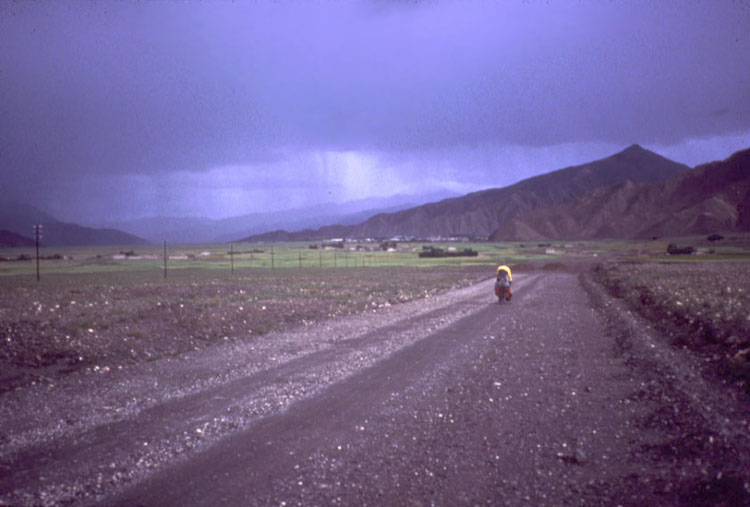 Part with Alex in Shigake, wanting to take the old road to Gyantse. Rough road, rain pours. Roads flood, rising past axle level. Gyantse “Carpet Makers Resthouse”